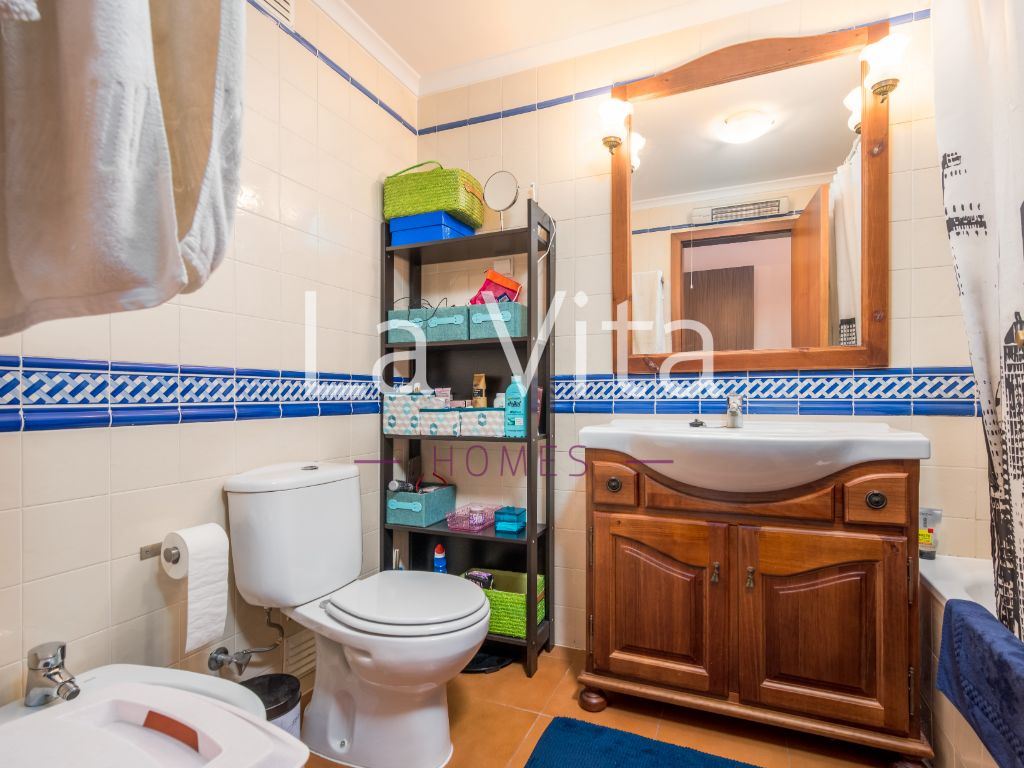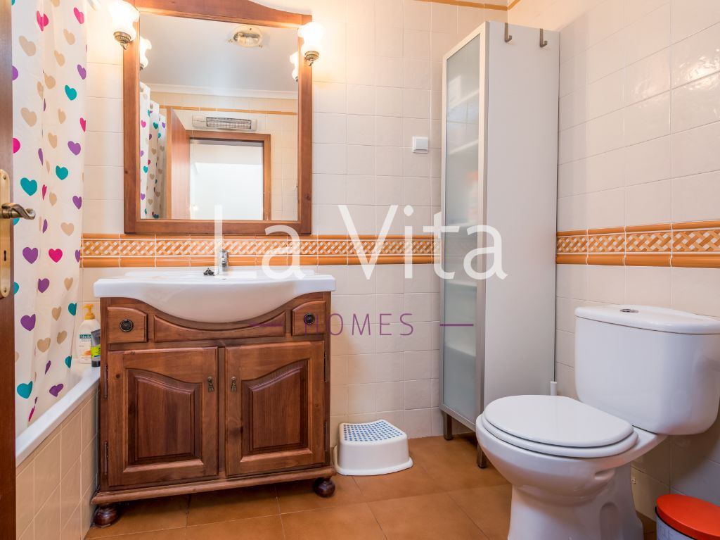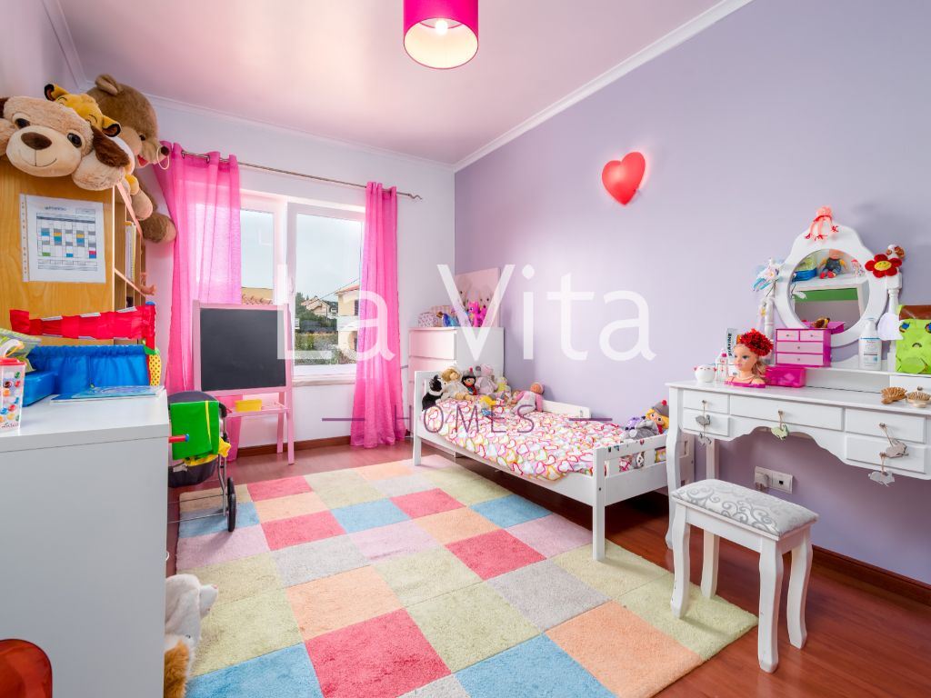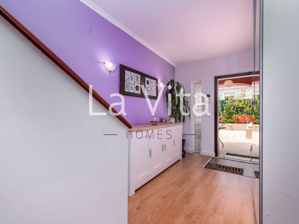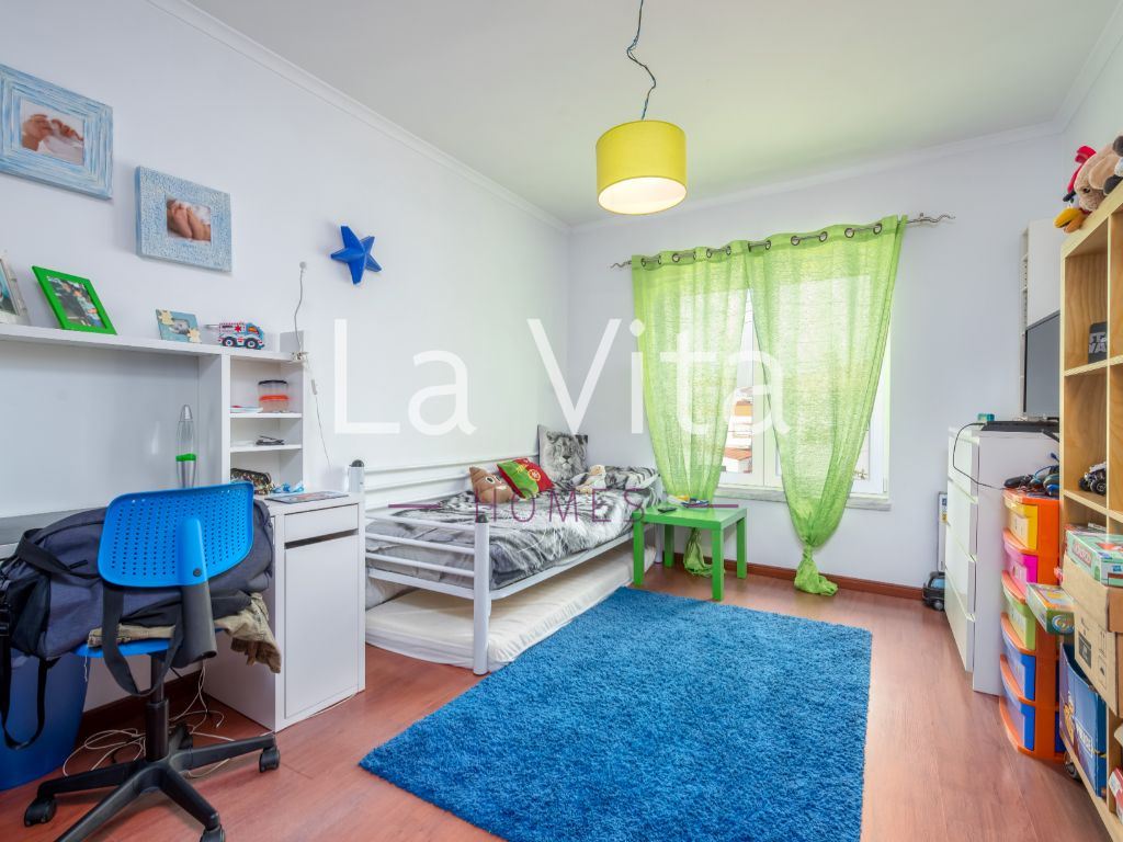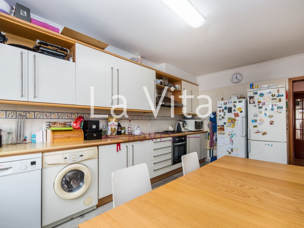 Imóvel com óptimas áreas, composto por: sala de 38m2 com lareira, cozinha com 19 m2 equipada, 1 suite com 16 m2, 1 quarto com 15 m2 e 2 quartos com mais de 14 m2, todos os quartos com roupeiros embutidos, 3 casas de banho completas, garagem box para 2 carros e mais espaço para arrumos. Caixilharia com vidros duplos, porta blindada, quintal/ horta e video porteiro.