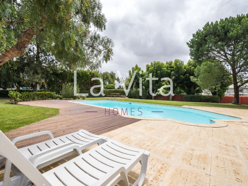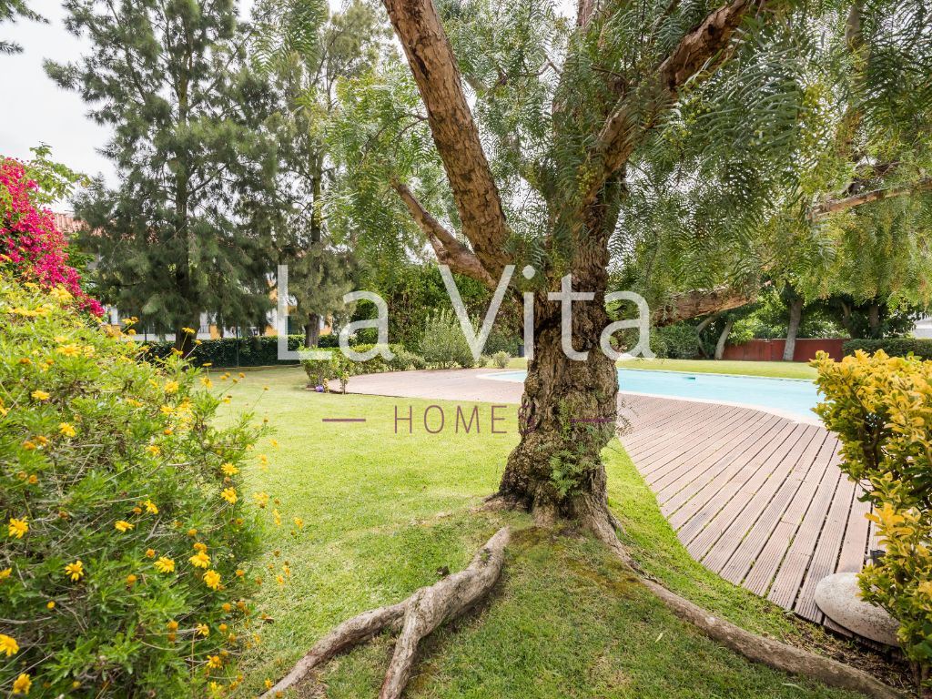 Excelente moradia com muita luminosidade, em condomínio fechado com jardim privativo e piscina, numa zona de absoluta tranquilidade.